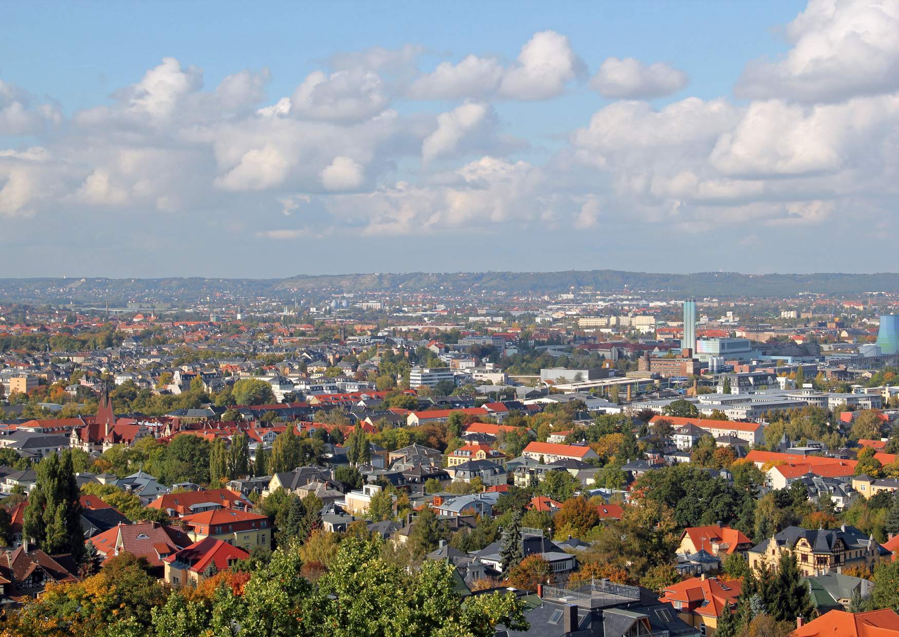 Fichteturm Blick zum Spitzhaus Bild zum vergößern anklicken Nächstes Bild Vorheriges Bild Der Blick in Richtung Spitzhaus über das Häusermeer von Dresden.