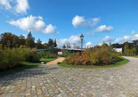 Am Eingang zum Fürst Pücklet Park Bad Muskau Bild zum vergößern anklicken Nächstes Bild Vorheriges Bild Als erstes kommen wir hier an der Gärtnerei im Park Bad Muskau vorbei. Hier nicht zu sehen hinteruns befindet sich der offizielle Parkplatz zum Muskauer Park und der Eingang.