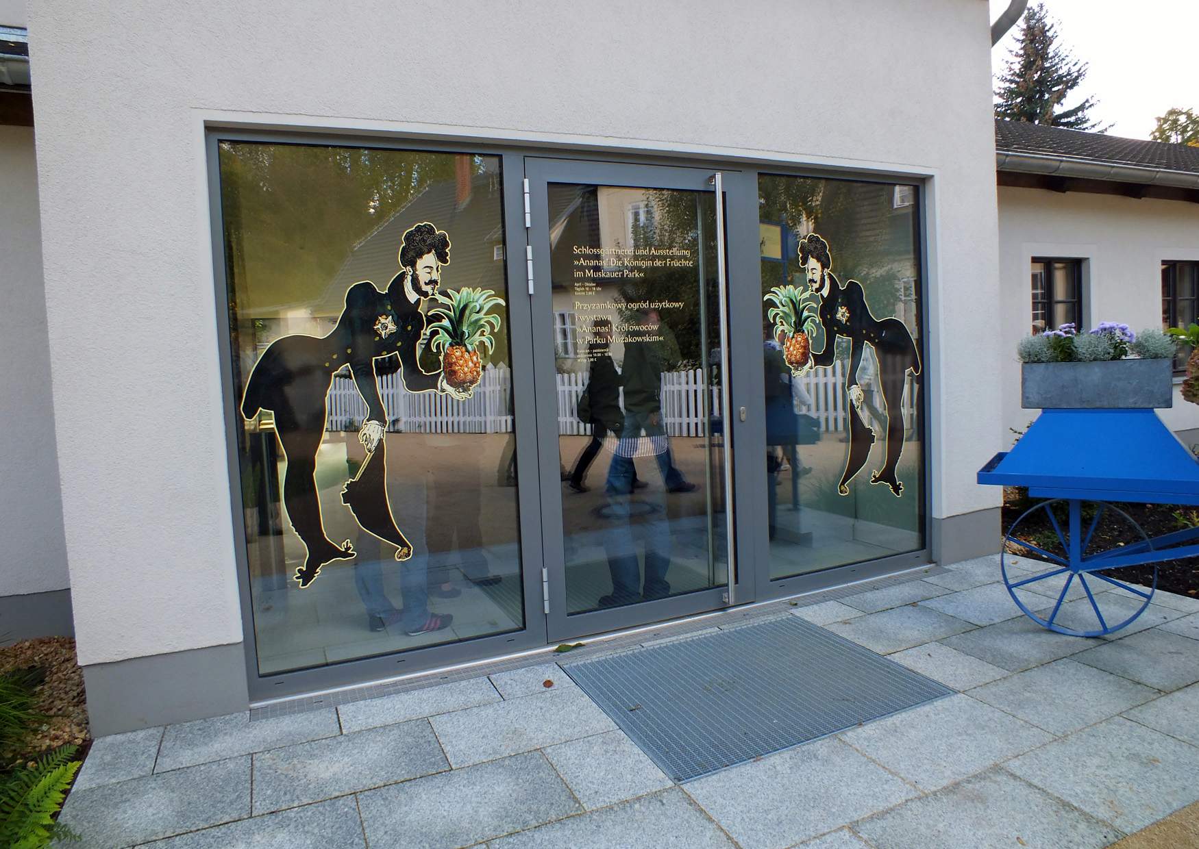 Schlossgärtnerei Bad Muskau Bild zum vergößern anklicken Nächstes Bild Vorheriges Bild An der Schlossgärtnerei fand ich die Aufmachung an der Tür ganz witzig, Schlossgärtnerei und Ausstellung "Annanas! Die Königin der Früchte im Muskauer Park".