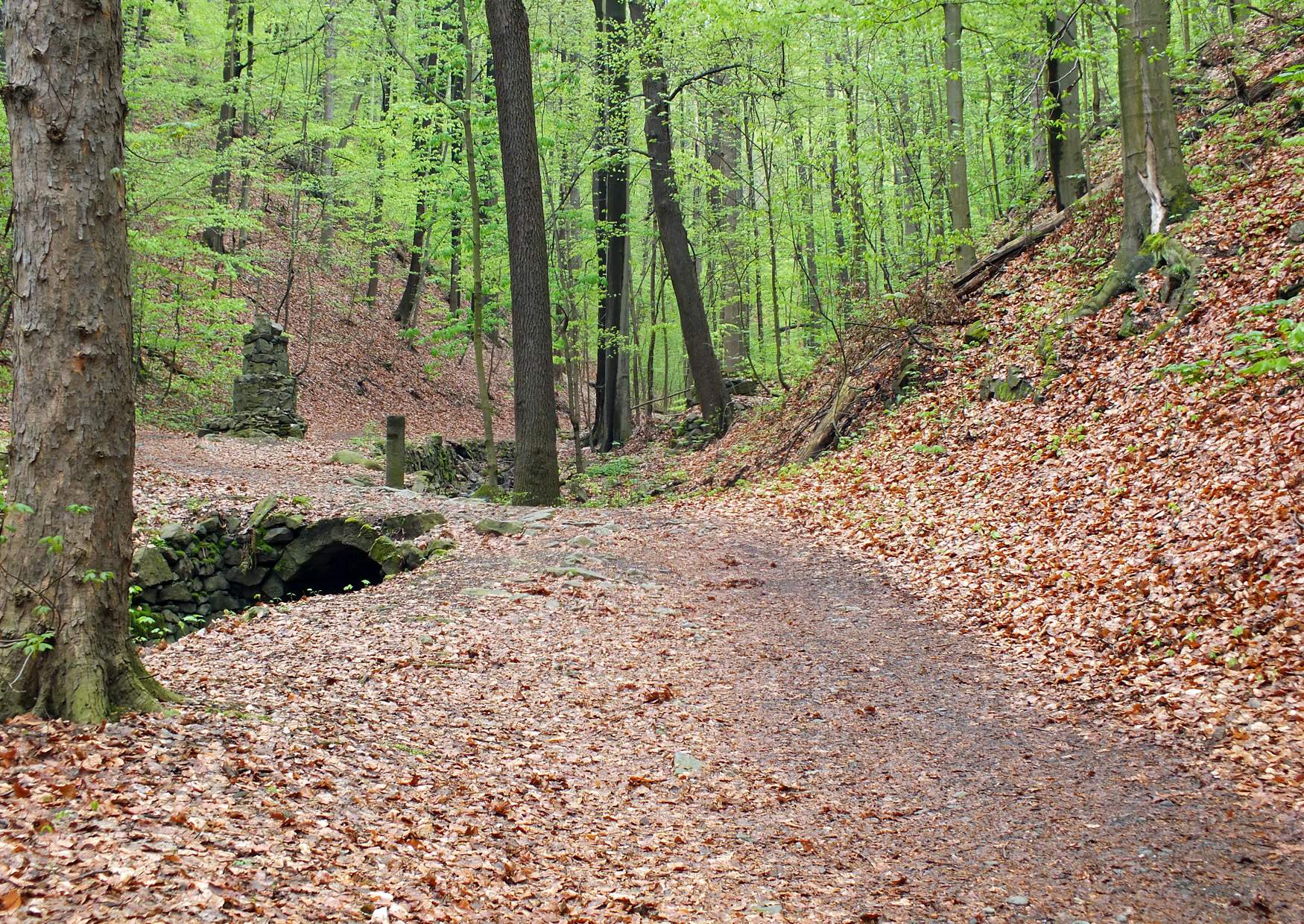 Der Wanderweg durch den Friedrichsgrund führt immer am Friedrichsbach entlang über viele kleine Brücken. Hier am Weg gibt es auch ein verkleinertes Abbild der legendären Irminsul (Irminsäule), das hier auf dem Bild zu sehen ist. Die Irminsul ist das zentrale Heiligtum des Stammes der Sachsen.