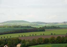 Die linke Bildhälfte nimmt die Halde Beerwalde ein. Das Landschaftsbauwerk Halde Beerwalde besteht aus drei ehemaligen Abraumhalden und ist ca. 40 Meter hoch. In der rechten Bildhälfte sieht man einen Strommast. Dahinter befindet sich ein riesiges Wismut-Freiluft-Standbild, auch eine Sehenswürdigkeit. Ganz rechts der alte