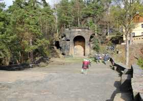 Wanderziel Aussichtspunkt Belvedere Böhmische Schweiz Bild zum vergößern anklicken Nächstes Bild Vorheriges Bild Wie man hier an den Rucksack bepackten Menschen sehen kann, ist der Aussichtspunkt heute ein beliebter Anlaufpunkt bei Wanderungen in der Böhmischen Schweiz.